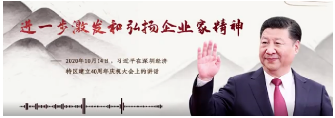 聆听习近平总书记在深圳经济特区建立40周年庆祝大会上的讲话录音,理解当代企业家精神的内涵。