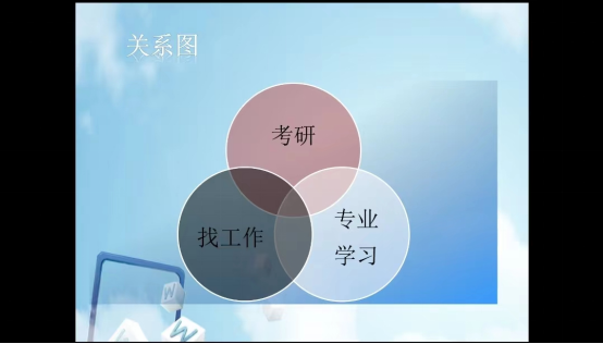 讲座活动伊始,英语教育教研室主任张文锋着重强调坚定决心,科学备考的重要性,同时详细说明了考研、找工作、以及专业学习三者之间的关系。