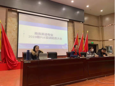 12月29日下午,星空体育官网在香远楼报告厅召开2019级商务英语专业学生PUE实训动员大会。副院长王伟、商务英语教研室、学生科和教务科相关负责人以及该年级辅导员和各班班主任参加了会议。