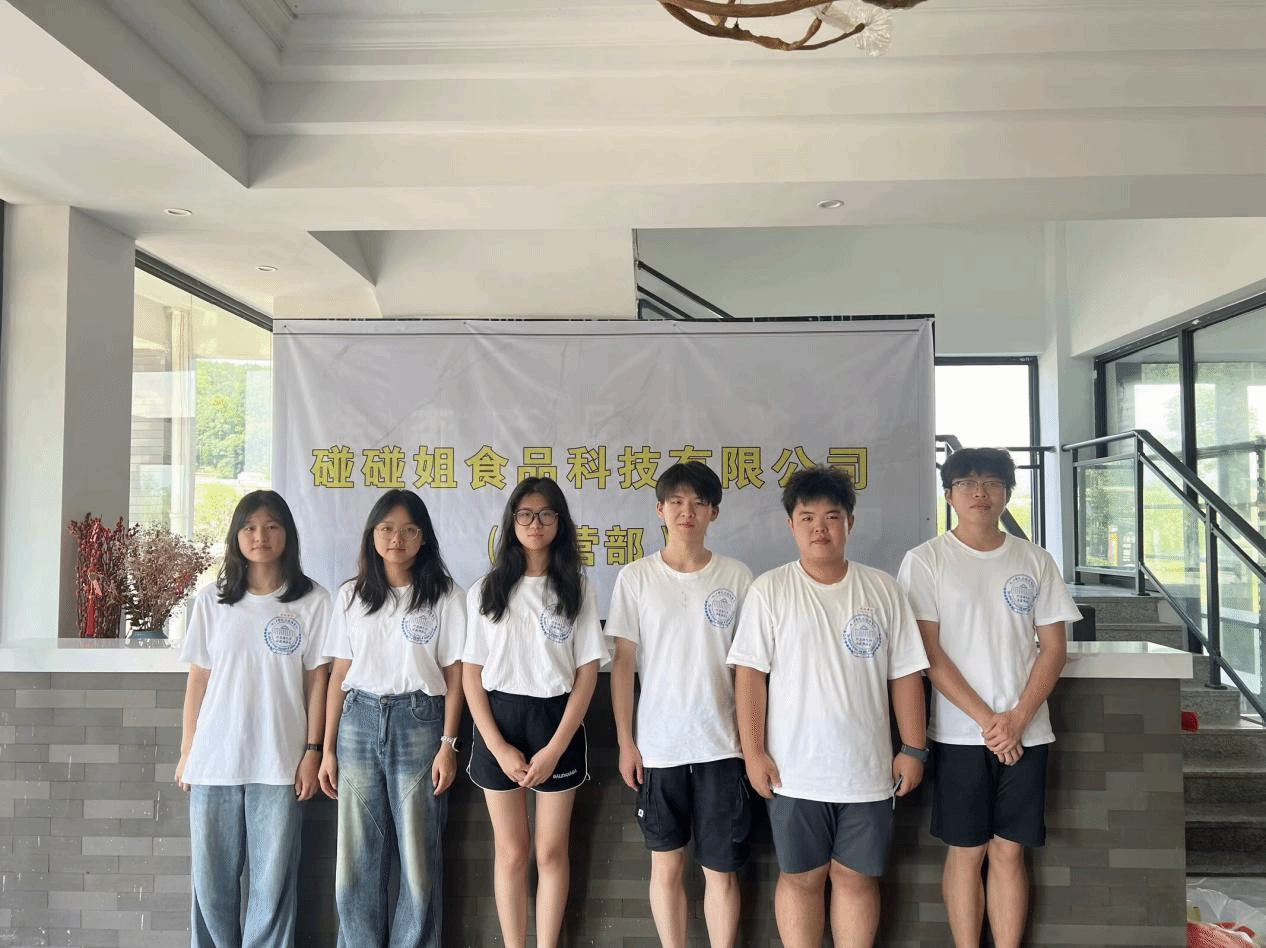 7月3日下午,实践团队来到位于青年创客之家三楼的碰碰姐食品有限公司的基地,参观和了解电商直播的全过程。碰碰姐食品有限公司是以制作卤味鸡为主的、生产线和基地均位于东山村的本土公司。创始人张少华向同学们介绍有关电商的相关知识,向同学们科普视频拍摄剪辑、制作的过程,也带领同学们进行电商打包的实践。