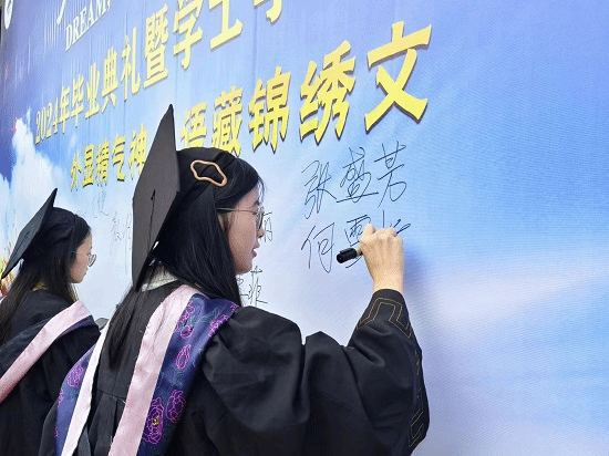 最后,毕业典礼在全体教师深情献唱的《祝你一路顺风》中落下帷幕。离歌声起别母校,踏歌逐梦向未来。骊歌唱响,拨穗礼成,众人以热泪盈眶相送,以深情歌声作结。一个梦想在这里结束,新的梦想从这里开始。愿全体毕业生前程似锦,砥砺前行,来日方长。