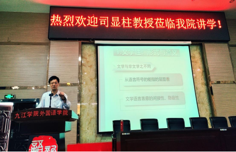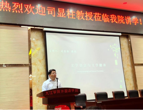 为提升星空体育官方网站师生的翻译能力和翻译素养,在江西省翻译协会四届一次理事会召开之际,星空体育官方网站在2024年4月26日下午特邀司显柱教授作了题为“文学语言与文学翻译”的专题讲座。专题讲座在星空体育官方网站三楼报告厅举行,由星空体育官方网站院长周志高教授主持,四百余名师生聆听了司教授的精彩讲座,反映获益匪浅。