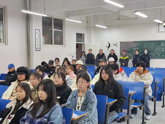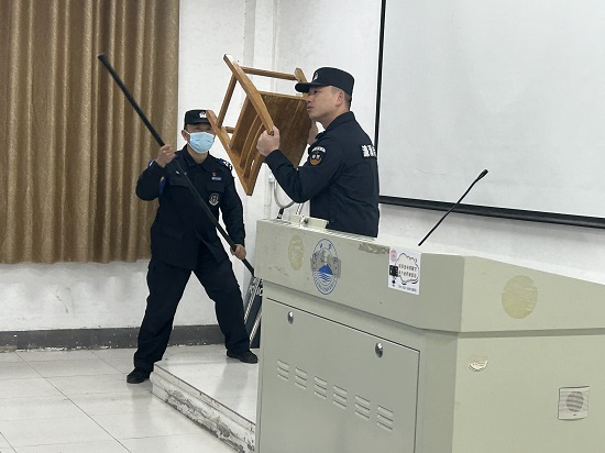 活动开始前,濂溪区公安分局特警在香远楼218教室给同学们讲解了反恐防暴突发事件应对方法,传授如何在维护自身安全的前提下有效地阻止极端行为发生,并在现场演示各类防护工具的使用,邀请同学们上台亲身体验。