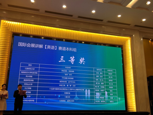 第六届大学生绿色会展创新创意挑战赛(以下简称“大赛)由江西省商务厅、江西省教育厅共同主办,中国会展经济研究会指导,南昌师范学院、江西省会议展览业协会具体承办。本次大赛共设有三个赛道:会展项目创意赛道、会展设计赛道、国际会展讲解(英语)赛道,其中国际会展讲解(英语)赛道是此项赛事第一次设置。经过校内选拔、初赛、决赛激烈竞争,最终星空体育官网代表队荣获三等奖。