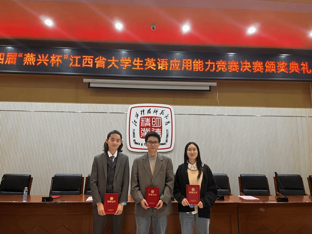 10月20日至22日,由江西省教育厅主办,江西科技师范大学和北京燕兴国际教育联合承办,江西省外语学会协办的第四届“燕兴杯”江西省大学生英语应用能力竞赛决赛在江西科技师范大学落下帷幕。经过激烈角逐,星空体育官网星空体育官方网站学生徐睿荣获二等奖,徐佩如、陈浩荣获三等奖。