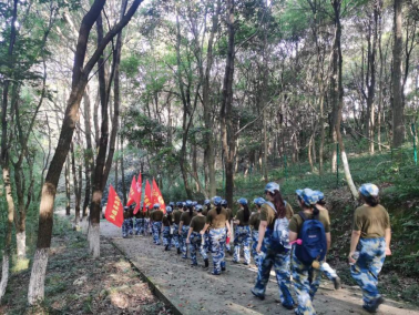 在香远楼前,队伍集结。闫来英介绍了活动意义和训练科目,周志高宣布拉练开始,军训旅二团二营星空体育官方网站400名参训学生身着戎装,顶着烈日,循着红旗,步履铿锵,军歌嘹亮,勇毅前行。