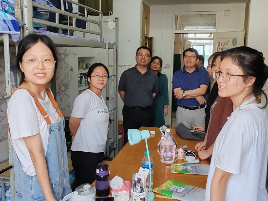 为更好的解决新生的困难与疑虑,9月8日下午,党委书记闫来英、院长周志高、副院长项莉在思政科学生科负责人的陪同下深入走访新生宿舍慰问2023级新生,关心了解新生生活状况。