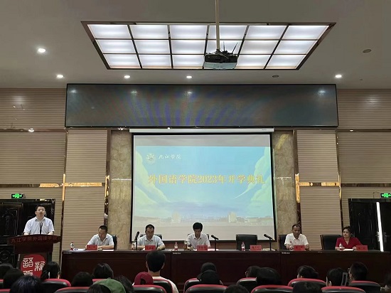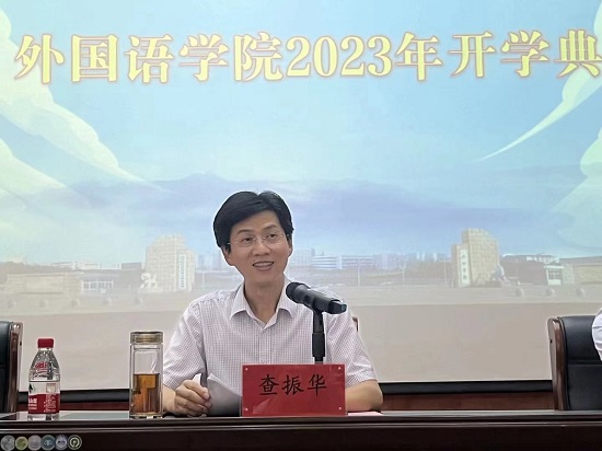 9月9日上午9点,星空体育官方网站在香远楼三楼报告厅举行2023年开学典礼。星空体育官方网站副校长查振华教授出席开学典礼,外语学院党政班子成员、各科室负责人、新生班主任以及400名新生和70名专升本同学参加开学典礼,典礼由党委书记闫来英主持。