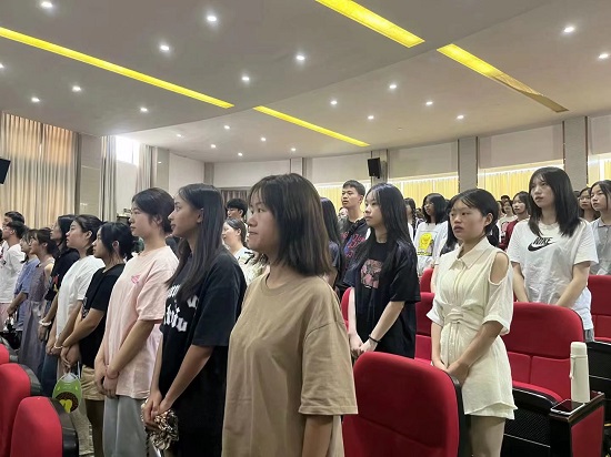 开学院典礼上,查振华为当天过生日的三位新生佩戴校徽,送上《习近平与大学生朋友们》的红色书籍,寄语她们十八而志,薪火相传。4百余名新生集体以青春的名义向祖国告白“青春心向党,建功新时代,学好外国语,做好中国人……”铮铮誓言激发着奋进的力量。