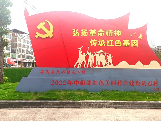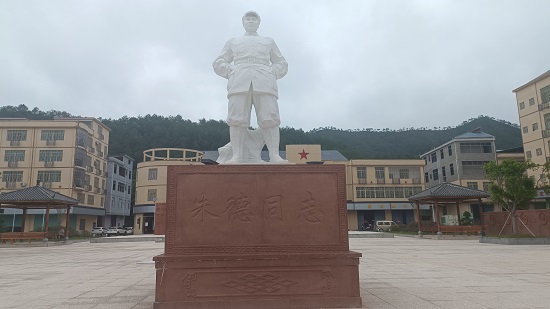 走进天心整军旧址,首先,映入眼帘的是广场上巍峨挺拔的朱德雕塑。雕像严肃的神情,灼灼目光仿佛在诉说心中信仰。1927年10月,朱德、陈毅等革命先辈率领南昌起义军余部和第一军第二十五师撤离广东大埔三河坝,且战且退,10月21日来到安远天心镇天心圩卖油坝子。队伍在天心宿营后,22日傍晚,朱德、陈毅召开大会,分析当时革命形势,指明革命前途,鼓舞军队士气,制订战斗部署。