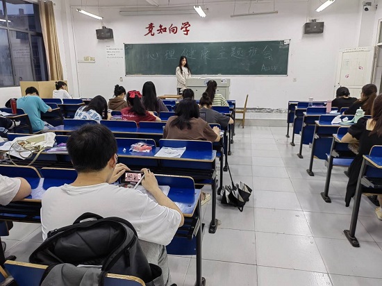 5月24日晚,各班在晚点名教室组织开展了心理健康主题班会,学习了大学生常见的心理问题及表现、如何应对常见的心理健康问题、如何更好的适应大学生活。通过心理健康主题班会的开展,同学们学到了心理健康知识,帮助同学们实现关爱自我、了解自我、接纳自我的目标。