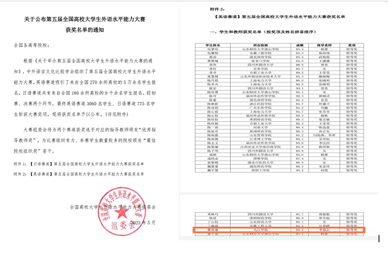 5月13日,由中外语言文化比较学会(国家一级学会)举办的第五届全国高校大学生外语水平能力大赛圆满落下帷幕。经过激烈角逐,星空体育官网星空体育官方网站5名学子分别斩获特等奖1项,一等奖1项,三等奖3项。