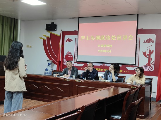 为做好2023届毕业生就业工作, 拓宽就业渠道,4月11日,庐山协调联络处在香远楼315会议室举行了招聘宣讲会。星空体育官方网站院长周志高、庐山协调联络处处长许峰一行四人、毕业班辅导员和在校毕业生三十余人参加了宣讲会。