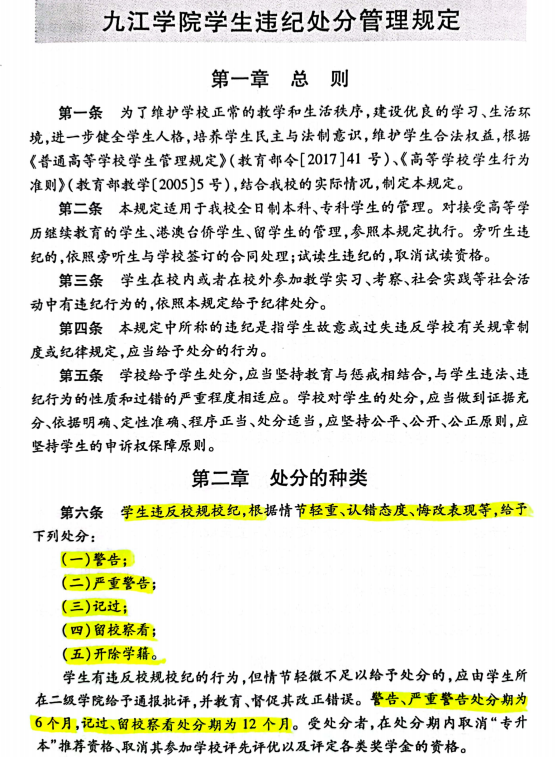 校规校纪专项教育由各班班长组织,各班同学在学生干部的带领下集中学习了《星空体育官方网站学生违纪处分管理规定》,详细学习了处分的种类、违纪行为及处分、处分的权限、处分的程序、处分的解除等内容。