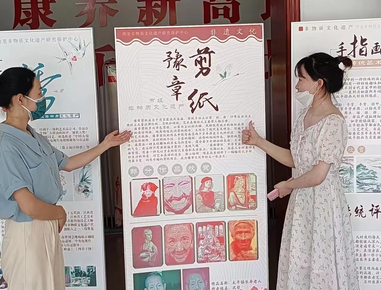 在实地考察过程中,讲解员先为大家介绍了豫章剪纸历史渊源,如何传承、整合。并展示了豫章剪纸发展至今传承人沈哲所作的代表性作品《白衣天使》《武汉加油》《武汉战疫》…等作品。在疫情最严重的时候,他与父亲通过最熟悉的剪纸艺术来表达对战胜这场疫情的信心,从而勉励大家面对疫情,共渡难关的决心。沈哲老师说过:“作为非遗传承人,希望做些力所能及的事情,创作一些作品,表达自己对决胜这场‘战役’的信心,并且与大家相互共勉,在疫情面前,愿大家坚信胜利指日可待。武汉,加油;中国,加油!”他还说:“非物质文化遗产想要得到更好的传承,就必须适应时代的发展,让更多人接受。剪纸艺术作为一种传统艺术,需要得到民众的关注和喜爱,这样才能不断焕发出生命力。”