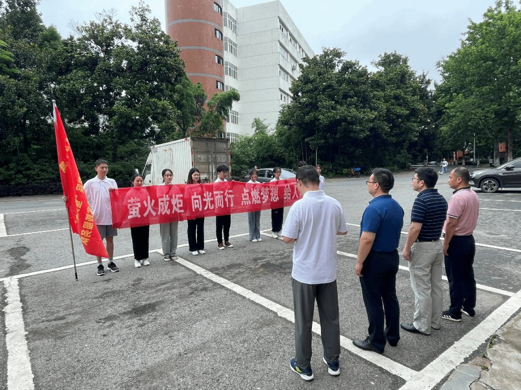 旗帜在手,责任在肩。周志高为“萤火虫”社会实践服务队授旗,宣布2022年大学生暑期“三下乡”社会实践调研活动正式启动。