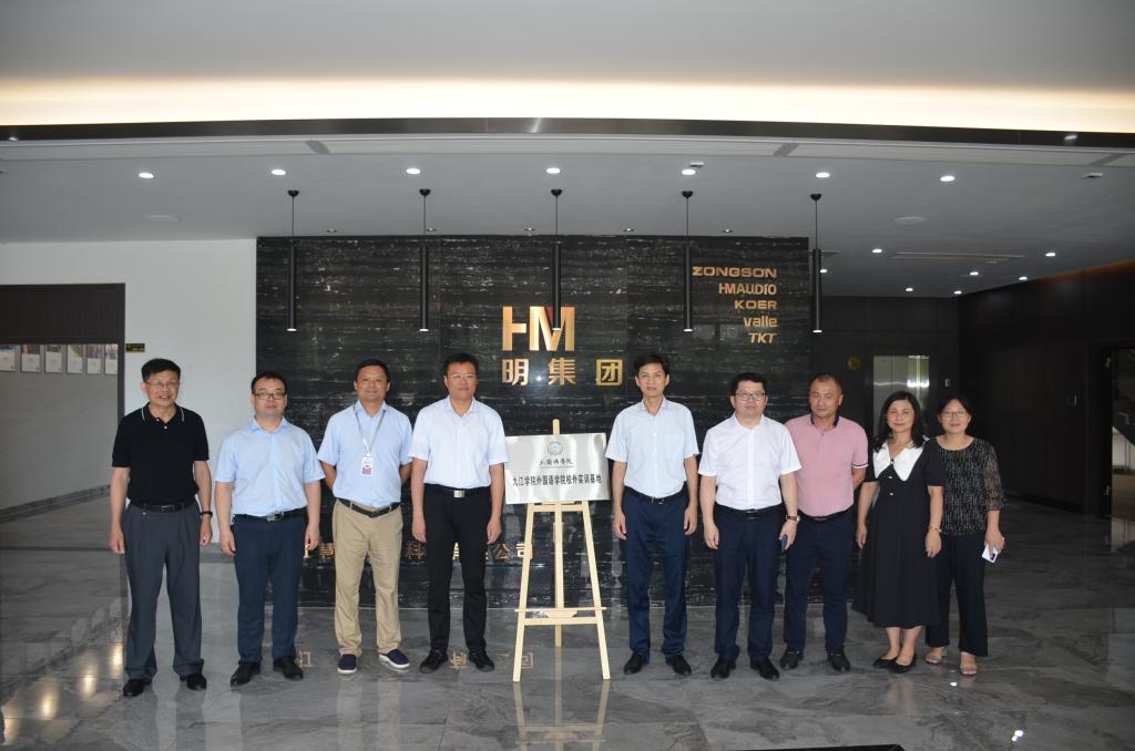 座谈会后,盛炜陪同查振华实地走访了九江慧明电子科技有限公司和江西终极幻境科技有限公司,并为星空体育官方网站校外实训基地揭牌。
