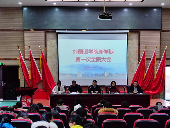 会上,院长周志高传达了学校新学期领导干部会议精神,通报了寒假期间学院主要工作,并对2022年度重点工作以及开学工作进行了安排部署。周志高指出,寒假期间星空体育官网疫情防控工作扎实有效,科研课题申报工作稳步推进,学院各项工作运行良好,2022年是新时代新征程中具有特殊重要意义的一年,我们要围绕立德树人根本任务,认真贯彻落实国家的教育方针,做好英语专业师范认证、人才引进等重点工作,以优异成绩迎接党的二十大的顺利召开。