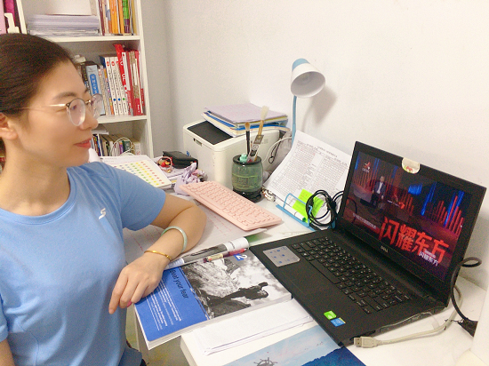 英语教研室教师林程:现在的中国已经跟以往完全不同,在中国共产党的领导下,我们国家会更加强大,作为一名外语教师,我深刻感受到了自己的责任重大,不仅要授业解惑,同时还要引导学生利用所学知识去看世界,去向世界展示中国,为中外交流贡献自己的一份力量。