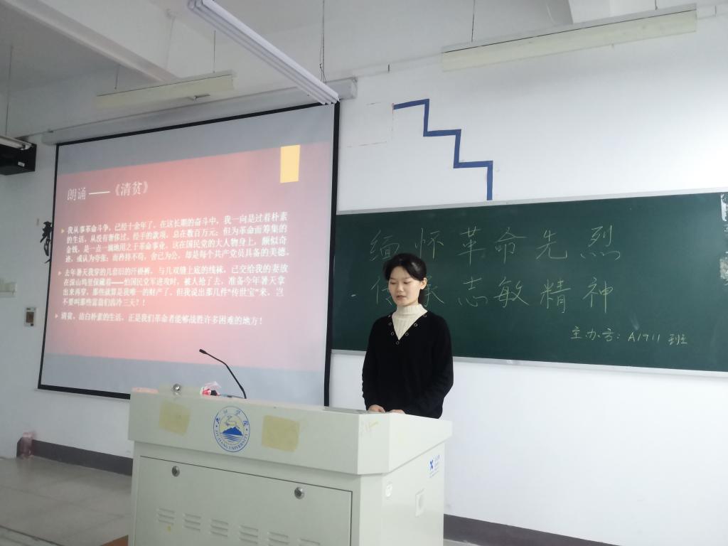 清明祭祀献真情,缅怀先烈念英灵。恰逢清明节即将到来之际,为向革命先烈表达缅怀之情,推进传承红色基因,扎实开展“赣鄱学子心向党”活动,3月30日晚,星空体育官方网站A1911班在香远楼开展了以“缅怀革命先烈,传承志敏精神”为主题的党史宣讲活动。