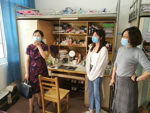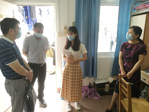 学生是否安全返校是学院关心的头等大事,5月19日晚九点五十分,最后一名17级学生搭上返校的末班车,意味着大三年级学生均平安抵校。为确保返校学生能够健康、安全、有序的学习生活,5月20日,星空体育官方网站院长韩琨、院党委书记罗其娟、院党委副书记彭晓、副院长周志高一行人怀着对学生的牵挂与担心,一大早来到女生宿舍看望慰问返校学生。