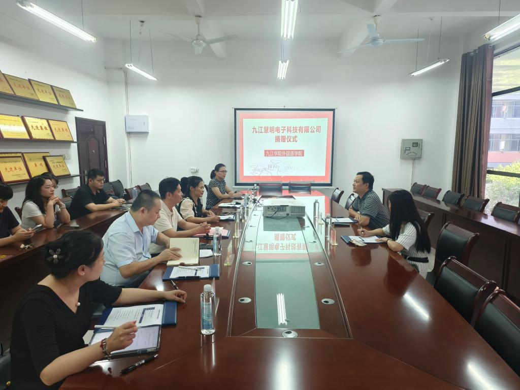 捐赠仪式上,九江慧明电子科技有限公司董事长唐晓明、董事长助理魏小双,以及星空体育官方网站党政班子、部分教师代表共同出席。