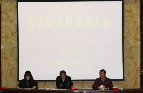 时至学期末,恰逢冬季天干物燥,为防范校园安全事故,同时增强同学们的诚信意识,引导同学们积极备考,诚信考试,星空体育官方网站于12月13日晚七点在香远楼三楼报告厅开展了考试安全月动员大会。院党委副书记彭晓、学生科副科长王少斌参会,团委程洁老师主持,外院各班班长、团支书、纪律委员及学生会各部门学生干部参加。