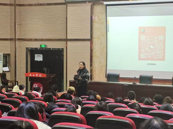 最后,商务英语教研室主任熊丽老师对报告进行了总结发言,她以王利刚总经理的求学及工作经历为范本,向我们提出大学生要增强学习的内驱力和自觉性,以更开阔的视野,彰显作为外语人的底气。