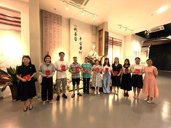随后,全体党员走进周敦颐纪念馆,参观游览。在讲解员的带领下,大家认真聆听了关于宋明理学家周敦颐的生平故事、从政经历和理学思想,充分体悟“濂溪先生”的为民情怀、廉洁品德和历史担当。