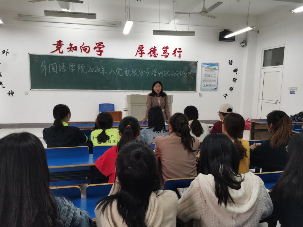 为加深入党积极分子对党组织的认知,坚定入党决心。2020年10月14日下午3时,星空体育官方网站在香远楼218教室举行了2020年入党积极分子培训班开班仪式。由星空体育官方网站学工党支部书记江银凤主持,78名入党积极分子参加了此次开班仪式。